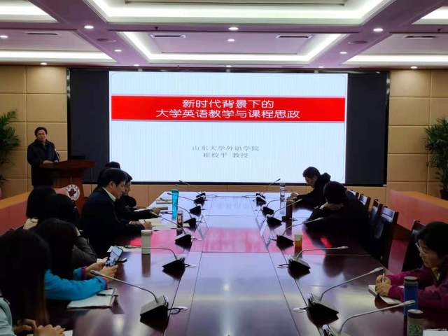 崔校平以“新时代背景下的大学英语教学与课程思政”为题,从加强课程思政的意义、课程思政的内涵、课程思政与思政课程的关系、怎样在大学英语教学中融入思政元素等方面展开阐述。