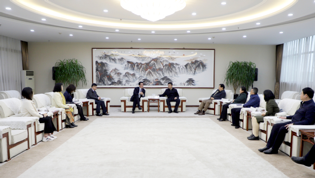 4月23日,北京大学深圳医院党委书记王涛一行5人来校交流,校党委书记李明、院长管英俊分别会见客人并座谈。