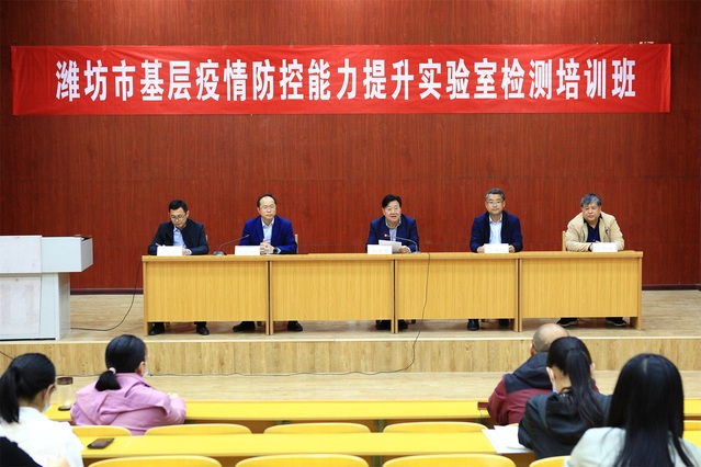 5月7日,由潍坊市疾病预防控制中心委托我校承办的“基层疫情防控能力提升实验室检测培训班”第二期在虞河校区开班。我校副院长孙宏伟、潍坊市疾病预防控制中心副主任孙永波参加开班式并讲话。开班式由继续教育学院院长李向辉主持,潍坊市疾控中心和继续教育学院相关负责人及全体参训学员参加。