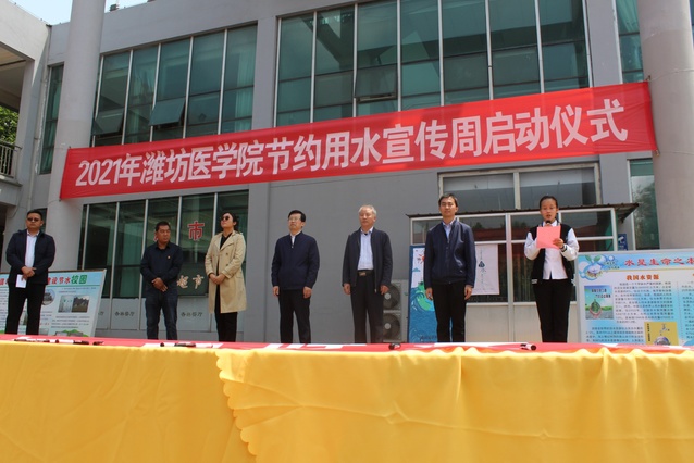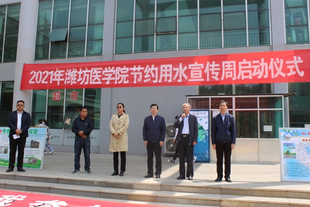 范升海在致辞中对潍坊市用水情况进行了简要介绍并高度赞扬了学校的节水工作。他指出,节水工作是政府高度重视的一项工作,青年学生是国家的未来,要对青年学生进行科学的系统的节约用水宣传与教育,让节水工作具备科学性和可持续性。潍坊医学院多年来在节水工作方面取得了优异的成绩,广受各方好评,希望学校今后再接再厉,重视对学生的节水宣传与教育,将节水意识根植于每个学生的心中。