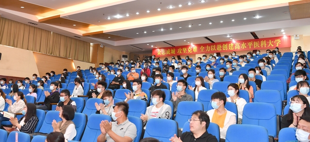 李明结合校史校情,结合学校70年发展历程,向师生讲述学校建校之初的艰苦创业;讲述每一次国家危难时刻,党和人民急需之际,潍医人从未缺席;讲述一代又一代潍医人“自强不息、锐意进取”的潍医精神;讲述“国家召唤、使命必达”的家国情怀是潍医人永恒的精神底色;讲述在党的百年发展历程中精彩的潍医故事,令现场师生无不为之动容。