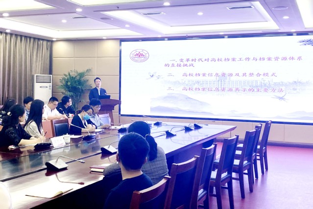 5月19日,学校2021年兼职档案员培训会在办公楼四楼会议室举行,邀请山东大学历史文化学院教授、山东大学档案数据与社会记忆研究中心主任赵爱国教授作了题为《变革与发展:高校档案信息资源的整合与共享》的专题报告。