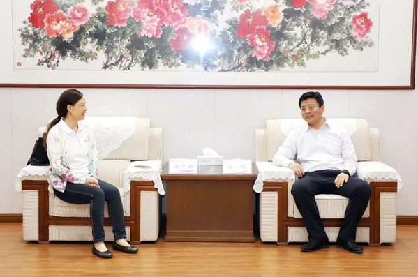李明对陈宁姗再次回到母校表示热烈欢迎,介绍了学校近年来的改革发展情况和取得的成绩,双方在提高人才培养质量、加强学科和平台建设、发展社会服务等方面进行了交流。李明表示,校友是学校最宝贵的资源,是学校办学质量的体现,很高兴优秀校友一直关心并支持母校的发展,希望进一步推动学校和校友的联系与合作,促进共同发展。