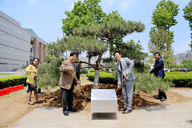 近日,我校2004级校友、泰山学者、首都医科大学博士生导师薛新颖与同级校友刘玉霞、马西栋、胡超、张琪、刘呈祥来校交流。院长管英俊、副院长孙宏伟亲切会见来访校友,与校友们一同在中和广场南侧大花坛处栽植捐植的一株大型景观松树。