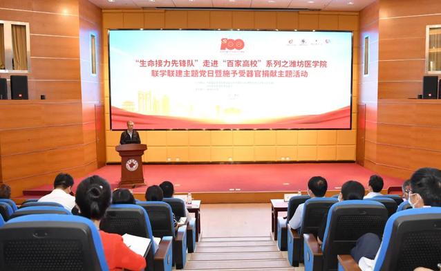 6月23日上午,由中国器官移植发展基金会和中国医学影像技术研究会联合党支部、中国器官移植发展基金会主办,潍坊医学院协办的“生命接力先锋队”走进“百家高校”系列之潍坊医学院联学联建暨施予受器官捐献主题活动在我校举行。