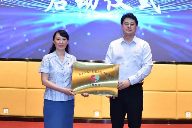 管英俊和中国器官移植发展基金会秘书长蒲苗先后主持了施予受器官捐献志愿服务合作启动仪式。