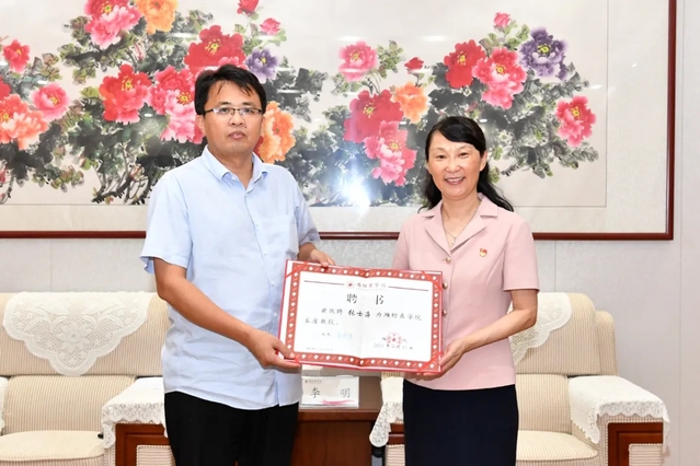 报告会前,校领导亲切会见了张士海教授。党委书记李明对张教授莅临学校表示欢迎和感谢,并就进一步加强理论研究、党史学习教育,做好思政育人等工作进行了深入交流。院长管英俊为张士海教授颁发客座教授聘书。