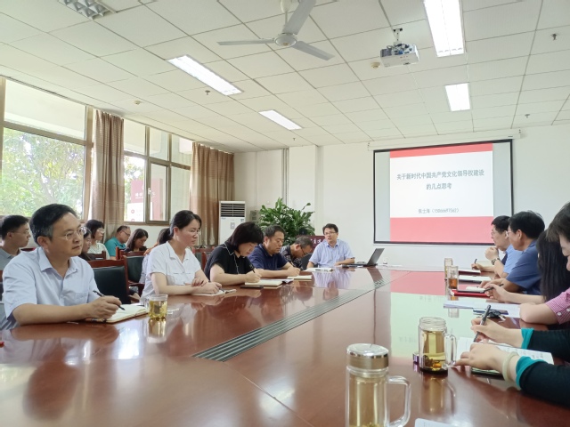 张士海教授是国务院马克思主义理论学科评议组成员,山东大学杰出中青年学者,曾荣获“全国高校思想政治理论课教师年度影响力人物”、“全国高校思想政治理论课教学标兵”称号,在党的建设研究方面有很深的学术造诣。张教授以《关于新时代中国共产党文化领导权建设的几点思考》为题,详细解读了四个方面的内容,即:为什么要加强文化领导权建设?加强文化领导权建设的目的是什么?怎样加强文化领导权建设?加强文化领导权建设建设的时代要求有哪些?整场讲座逻辑严密、思路清晰、观点鲜明,受到了教师们的一致好评,讲座结束后,与会教师与张士海教授进行了互动。通过聆听张教授的讲座,丰富了教师们的党史知识,拓展了教师们的学术视野,老师们纷纷表示很有收获。