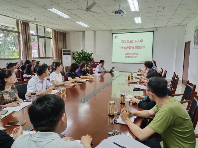 7月13日下午,马克思主义学院特邀山东大学马克思主义学院院长、博士生导师张士海教授来校做学术讲座,相关学院教师及马克思主义学院全体教师到场聆听。