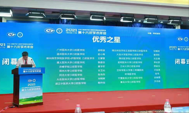 7月15日至17日,2021年中华口腔医学会口腔教育专业委员会第十六次学术会议在呼和浩特召开,我校学生在此次会议举办的全国口腔医学院校本科生临床技能展示赛中获得“优秀之星”荣誉称号。