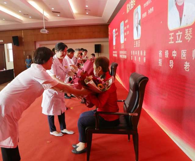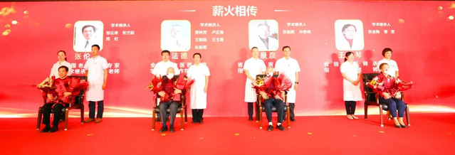 学术继承人代表向国家级、省级师承指导老师敬献鲜花