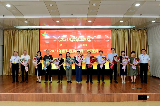 向2021年度荣退医师和从医执教满30年医师献花致敬