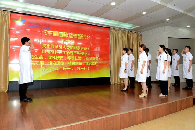 学校附属医院举办中国医师节庆祝暨表彰大会。学校附属医院领导班子及医师代表参加。会上,宣读表彰了本年度荣退医师,从医执教满30年医师和获得上级表彰的优秀医师。“新时代齐鲁最美青年”获得者张军桥带领新入职医师宣誓,全体起立重温“中国医师宣言”。