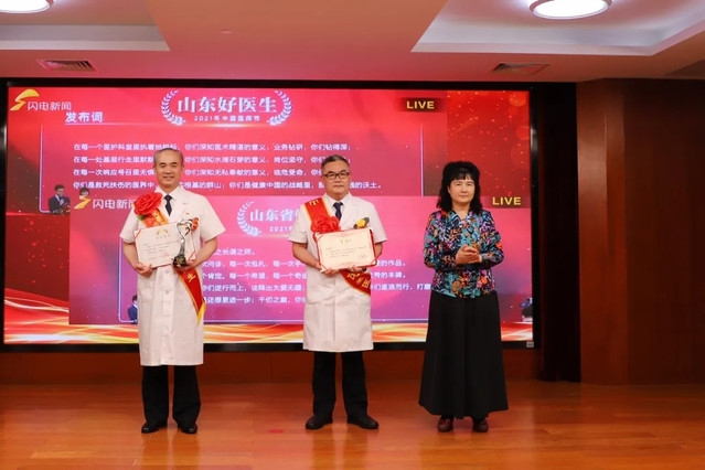 副市长李平为山东好医生获得者于国华、山东省优秀医师获得者王海波颁奖