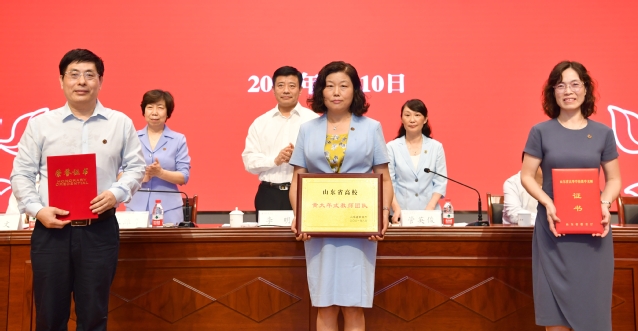 李明、管英俊、张潍华分别为“山东省高校黄大年式教师团队”负责人张维芬教授、2020年山东省高等学校教学名师代表张蕊教授、2021年“山东学校思政课教师年度人物”李笃武教授颁发证书。学校对获得市级及以上荣誉的先进集体和个人,学校师德标兵、优秀老师、优秀辅导员、先进工作者、实践教学先进集体和先进个人、在教育教学岗位工作满30年的教职工代表进行了表彰。