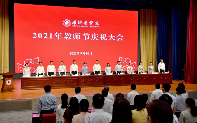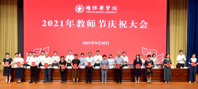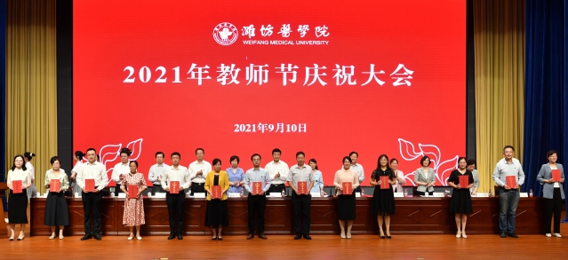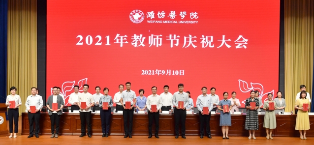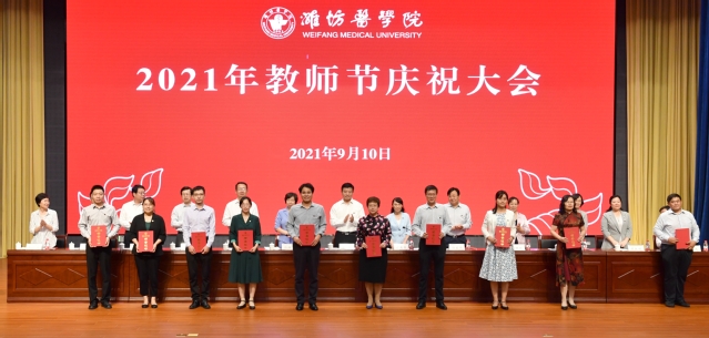 金秋九月,桃李飘香。9月10日下午,学校2021年教师节庆祝大会在浮烟山校区文体活动中心报告厅隆重举行。校党委书记李明发表讲话,院长管英俊主持庆祝大会,党委副书记张潍华宣读各项表彰决定和在教育教学岗位工作满三十年人员名单。校党委领导班子成员孙宏伟、葛国文、田艳玲、张建华、卢国华、王承高、梁淑娟,附属中医院党委书记、院长王冰,妇幼保健院党委书记高振忠,第一附属医院党委副书记、第一临床医学院院长孙丽福出席会议。