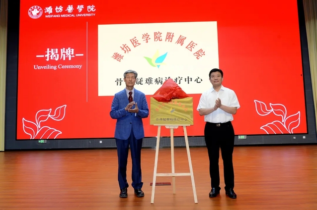 9月11日,秦泗河肢体畸形残障功能重建研究所暨潍医附院骨科疑难病诊疗中心揭牌仪式在浮烟山校区文体活动中心报告厅举行。学校71级优秀校友、著名肢体畸形残疾矫治专家秦泗河教授与学校党委书记李明共同为秦泗河肢体畸形残障功能重建研究所、潍坊医学院附属医院骨科疑难病诊疗中心揭牌。