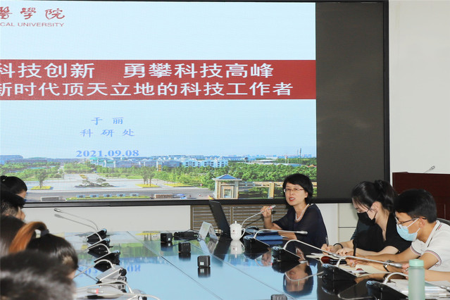 科研处处长于丽为新职工作题为《新进教师岗前培训(科研篇)》专题报告。于丽从科学研究的意义、科研项目申报、科研成果申报、科研政策法规以及服务与保障五个方面,指导新入职青年教师如何过好科研关。