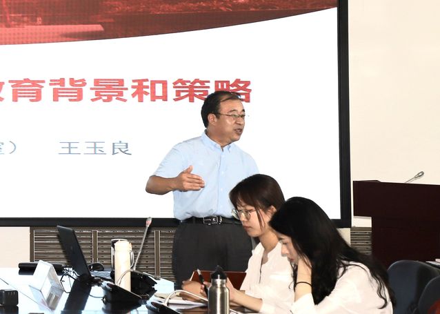 发展规划处(服务地方办公室)处长(主任)王玉良为新职工作题为《学校“十四五”发展的教育背景和策略》专题报告。王玉良从高教历史与现状、发展基础与环境、发展思路与策略、发展目标与任务以及发展愿景与考量五个方面,为新职工详细讲解了学校“十四五”发展的基础、目标、发展思路以及百年发展愿景与步骤等。