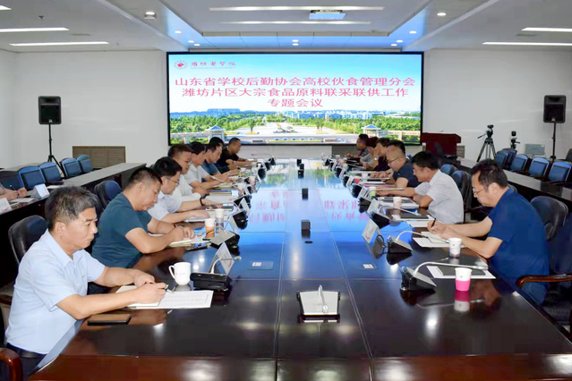 为深入贯彻落实山东省教育厅、山东省财政厅、山东省市场监督管理局《关于加强学校大宗食品统一配送管理工作的意见》,9月25日上午,山东省学校后勤协会高校伙食管理分会潍坊片区大宗食品原料联采联供工作专题会议在学校召开。山东省教育发展服务中心学校后勤部张萌、山东省学校后勤协会副会长兼秘书长刘学祥以及潍坊各高校后勤负责人出席了此次会议。