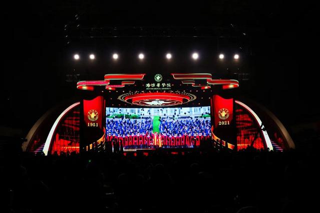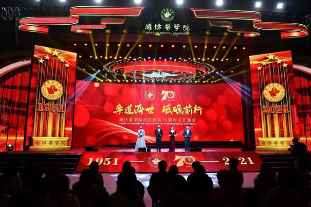 金笃学尚行七十载,强质筑基育英才。10月16日晚,浮烟山下、智和湖畔,“乐道济世 砥砺前行”潍坊医学院庆祝建校70周年文艺晚会在浮烟山校区文体活动中心上演,学校党委领导班子成员,来校嘉宾、校友、离退休老同志代表,学校部门、学院负责人和师生代表以及线上海内外校友和网友20余万人共同观看。本次活动是70周年校庆献礼工程文体活动中心启用以来,首次上演大型文艺活动,现场气氛热烈。