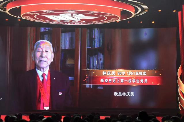 随后一曲混声合唱《闪亮的日子》,伴随着大屏幕上一一泛黄的老照片里青春的面庞,轻轻哼唱出那段陪伴着潍医成长,有欢笑、有泪水,却永远闪亮、滚烫的青葱岁月。现场播出了1951年入校的招收的第一级校友,也是学校历史上发展的第一位学生党员,已经90岁高龄的林庆民老先生的视频。听党话,跟党走。老先生精神矍铄,回忆了年少时在潍医求学进步的点点滴滴,言语中满含着身为学子对母校的拳拳之心、殷殷之情。