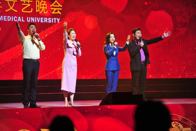 由退休教职工和青年学生共同带来的混声合唱《老师我想你》是老中青三代潍医人深厚师生情谊的诉说和表达,当朝气蓬勃的青年学子手捧鲜花,拥抱搀扶或满头银发、或双鬓斑白的老师们,台下每一位观众都被深深的触动。侯希敏教授、唐胜建教授、周广东教授、夏会堂博士师生四代同时出现晚会的一幕让人不禁感慨。从1976年团队起步,四代人接续发展走过45载,那是潍医精神代代传承的一个缩影,也是几代人坚守和努力的一个佐证。