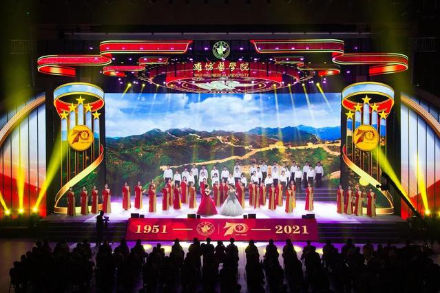 七十年岁月沧桑,七十年执着追求。晚会以“乐道济世 砥砺前行”为主题,以原创情景剧、原创朗诵、原创校园民谣、老中青混声合唱、讲述、光影互动等多元方式,以娓娓道来的形式呈现潍坊医学院七十年的发展历史,带领全体观众重温了一段段感人至深的潍医故事,留下了一个个催人泪下的难忘瞬间。