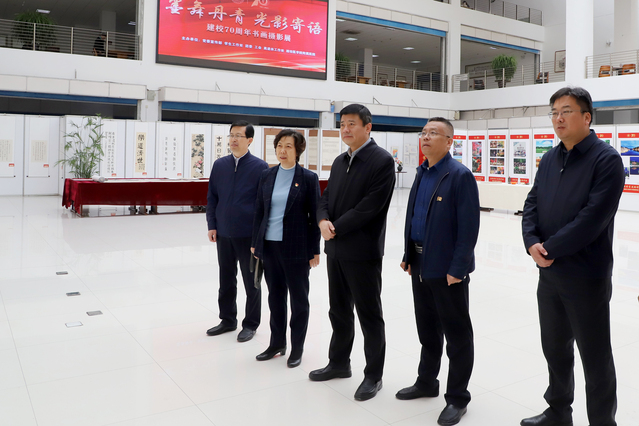 墨舞丹青绘潍医风采,光影寄语凝爱校深情。值我校建校70周年之际,为进一步弘扬潍医精神,展示办学成就,全面展现师生良好精神风貌,营造积极健康向上的高校文化氛围,墨舞丹青 光影寄语——建校70周年书画摄影展在校庆期间开启展览。10月16日至今,展览吸引了众多返校校友、嘉宾及我校师生到场参观。10月21日,党委书记李明,副书记张潍华,副院长张建华,党委委员、宣传部(教师工作部)部长田玉胜及相关部门负责人观看了展览。