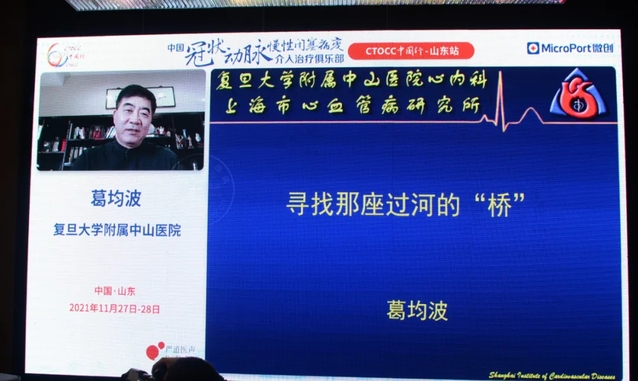 葛均波院士在线致辞,并作了题为《如何成为一名优秀CTO术者—— 寻找那座过河的“桥”》的精彩报告。葛院士一直关心关注山东地区心血管病学科专业的发展,为提高山东地区心血管疾病介入诊疗水平倾注了大量心血。他在报告中指出,作为一名优秀的医者,要始终坚守为了患者更健康、更幸福、更有尊严的生活的初心,敬畏生命、尊重科学,在科学研究和临床诊疗中,把创新思维和临床经验有机结合起来,积极推动心血管领域医学创新成果转化,在攀登医学高峰、触摸医学前沿的探索中,努力寻找那座过河的“桥”。