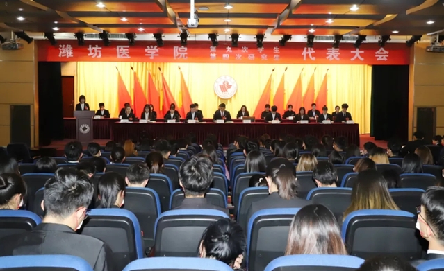 会上,潍坊医学院第八届学生会执行主席孙玉琪向大会作了《请党放心 强国有我 团结带领潍医学子为新时代伟大复兴贡献青春力量》的工作报告,潍坊医学院第三届研究生会执行主席杨奔作了《凝心聚力 开拓创新 在生动实践中放飞新时代青年的青春梦想》的工作报告。大会选举产生了第九届学生会主席团成员、第九届学生代表大会常任代表委员会委员以及第四届研究生会主席团成员、第四届研究生代表大会常任代表委员会委员,审议通过了《潍坊医学院第八届学生会工作报告》的决议、《潍坊医学院第三届研究生会工作报告》的决议。会议期间,各代表团围绕领导讲话、工作报告进行了广泛学习讨论,并就《潍坊医学院大学生综合素质测评办法(征求意见稿)》向学生代表征求了意见。下午,大会完成了各项既定议程,在《国际歌》中胜利闭幕。