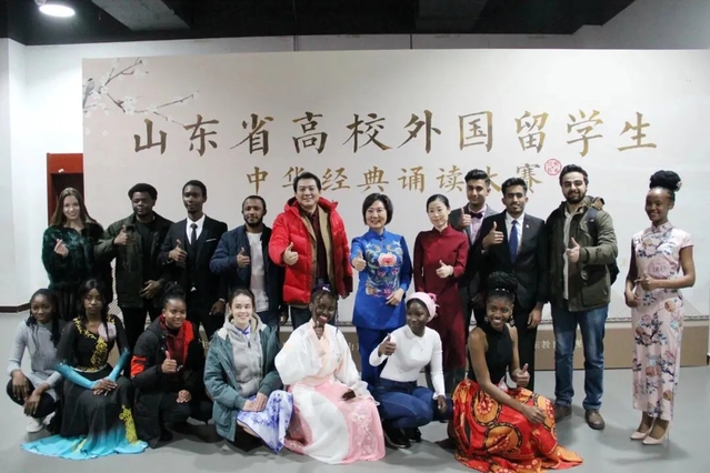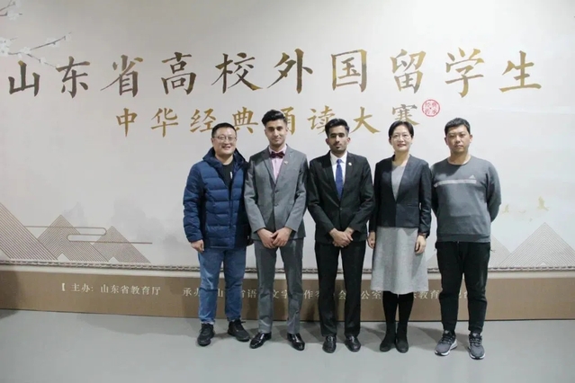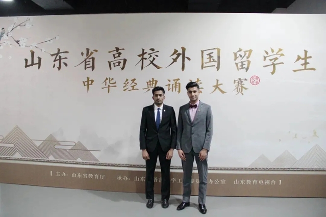 近日,山东省高校国际学生中华经典诵读大赛决赛在济南举办,来自省内11所高校共25名国际学生参加了比赛。我校来自阿联酋的国际学生王梓(AHMAD KARIM KHAN)获得一等奖,来自巴基斯坦的国际学生于凯(HAMEEDAHSAN)获得二等奖,刘波和刘婷婷老师获优秀指导教师。