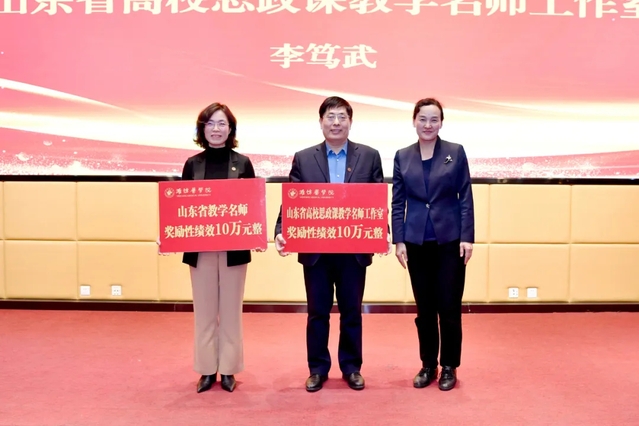 为荣获2021年山东省教学名师、山东省高校思政课教学名师工作室负责人颁奖
