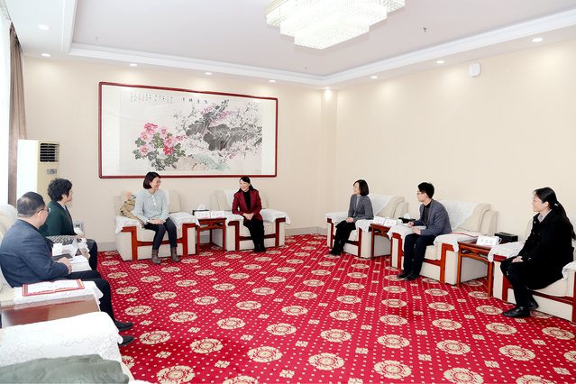 管英俊和俞冬熠就学科建设、人才培养、科学研究等工作进行了交流。管英俊表示,俞教授治学严谨,学术造诣深厚,成果突出,在国内有着较大影响力,希望能充分利用丰富的学术经验,在医学遗传学学科建设、促进遗传咨询与产前诊断专业人才培养、深化致病基因功能研究等方面,多给予指导和帮助;双方进一步搭建合作平台,共建临床遗传学重点学科和临床研究中心,推动产学研深度融合,充分发挥基因组学在新医科发展中的重要作用。俞冬熠表示潍坊医学院70年办学底蕴深厚、医学人才突出、学科优势明显,愿意担起责任,尽已所能为学校研究生培养及学科建设发展等服务出力。