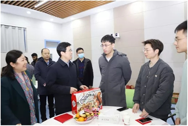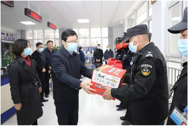 1月31日,副院长张建华、卢国华,统战部部长、研究生处(学科建设处)处长梁淑娟分别看望浮烟山校区和虞河校区坚守一线职工和留校学生,送上节日慰问品和美好祝福。