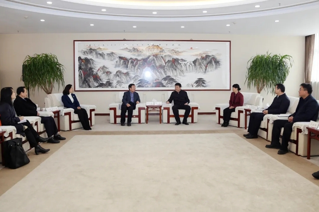 2月11日上午,阳光保险集团副总裁、工会主席夏芳晨,阳光保险集团总裁助理、阳光融和医院董事长高永梅,阳光融和医院院长王明晓等一行五人来校访问,党委书记李明、院长管英俊、副院长葛国文会见客人并座谈。
