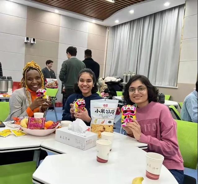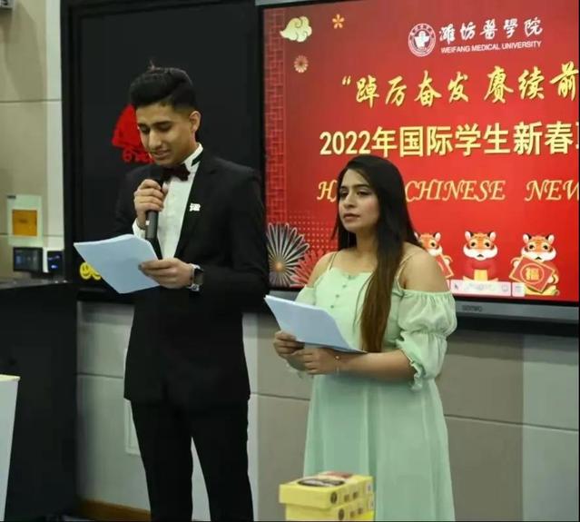 联欢会现场,国际学生自己动手布置的春联、福字、大红灯笼、中国结等春节元素布满教室,喜气洋洋,校领导与同学们围坐在一起,一同观看国际学生带来的精彩纷呈的节目表演,共庆农历壬寅虎年到来。坦桑尼亚籍学生海棠带来的英文歌曲《You Raise Me Up》旋律优美,表达了对学校领导老师始终对国际学生给予关注关心的感激之情以及对全球抗疫胜利的坚定信心。阿富汗籍学生王梓带来的中文演讲《红军精神赋能从医梦,不负韶华笃行最青春》表达了国际学生学习红军精神,共建人类卫生健康共同体的理想追求。校领导代表学校向外籍教师、国际学生、留校研究生致以新春的问候和节日的祝福,并将中国传统民间工艺品高密泥塑“叫虎”和新春礼盒送给大家,祝愿大家虎年大吉、生龙活虎、虎虎生威,希望大家在潍医度过一个温馨愉快的春节。传统文化体验环节,国际学生在老师带领下,学习中国剪纸艺术,感受中国传统民间文化习俗。联欢会结束后,国际学生们意犹未尽,依依不舍,纷纷合影留念,表达辞旧迎新的喜悦。