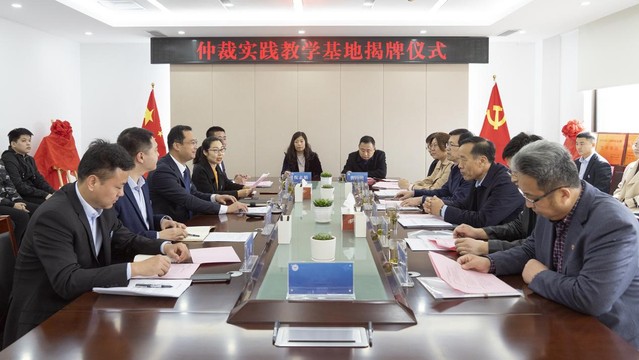 3月9日上午,潍坊医学院实践教学基地揭牌仪式在潍坊仲裁委员会举行。潍坊医学院副院长张建华、潍坊仲裁委员会专职副主任高强共同为“潍坊医学院实践教学基地”揭牌。潍坊仲裁委员会办公室副主任陈欣主持仪式。管理学院党政负责人、法学专业负责人和部分实习学生代表参加揭牌仪式。