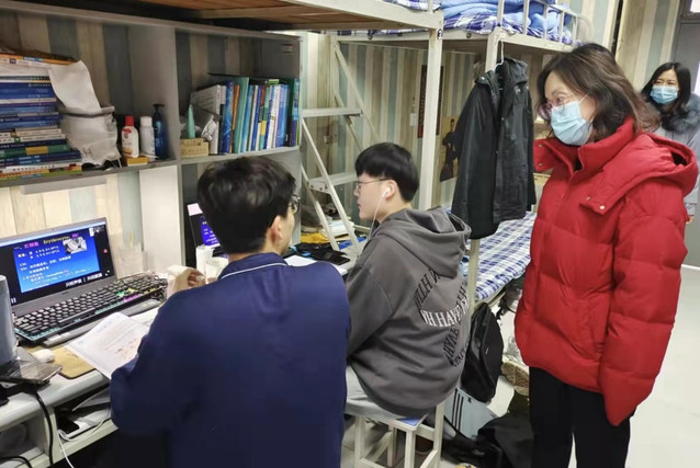 教师党员联系班级深入学生。全体教师党员一对一联系班级,重点做好疫情期间学生的学业指导及在线学习相关教学问题的帮扶工作,及时将学生在线学习过程中的意见、建议进行梳理、反馈,有效解决存在的问题;提醒、督促同学们定好闹钟、按时上课,通过跟听的形式进行全方位的查课。
