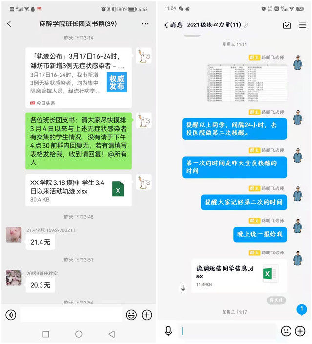 学院班子成员深入一线开展工作。学院对于省教育厅和学校疫情防控工作会议精神,第一时间传达和落实,部署安排疫情期间学生管理和教学工作;深入学生宿舍,了解学生的思想动态以及线上教学的开展情况,帮助学生解决好思想困惑和实际困难;现场调度学院全员核酸检测和核酸抽检工作,确保不漏一人。