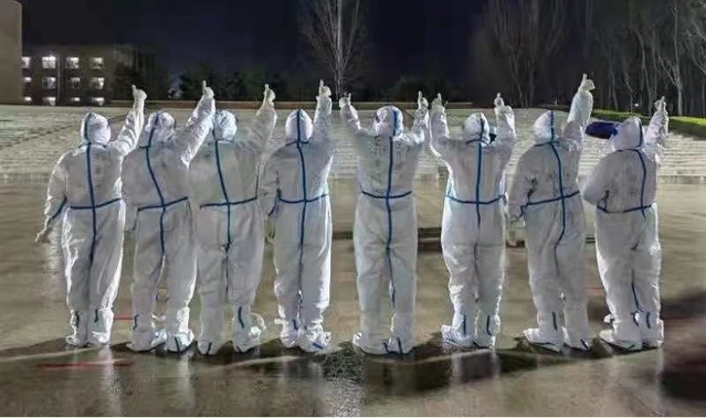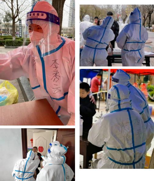 由于全民核酸检测时间紧、任务重,大家到岗后即刻进入战斗状态,昼夜工作。他们中有亲自上阵的眼科副教授、主任医师李艳,有夫妻志愿者刘升升、胡玮,有眼科的很多年轻医生,更有护士长刘宏亲自带领的一大批护理人员。据刘宏介绍,“那几天特别冷,大家都穿了五六层衣服,在寒风中还是瑟瑟发抖,手都冻麻了,每天结束摘下手套双手都被冻得红肿,吃饭也是随便扒上几口接着再干,但没有一个人喊苦喊累没有一个人抱怨,都兢兢业业的完成每天的检测工作”。此外,孙建、郭志超等四位护理人员也一直在一线支援医院的核酸实验室工作。