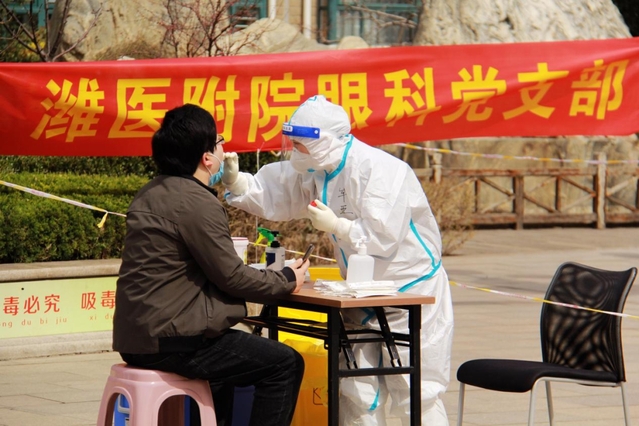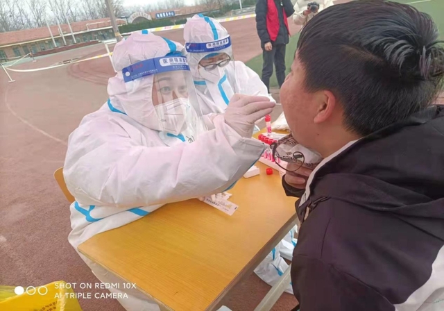 “来,抬头,张开嘴发‘啊’音,不要紧张,马上就好。”3月16日,在脊柱外科党支部书记刘晓伟带领下,核酸采样队16名医护人员进驻山东工业技师学院、山东科技职业学院,为近两万名师生开展核酸采样工作,助力校园疫情防控。