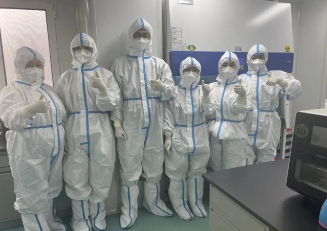 激增的核酸检测工作量繁重、感染风险大、工作技术要求高,检验科的同志们日夜奋战,在操作间内24小时工作不停。从质量保证到实验室生物安全,再到物资供应……从应急预案到风险评估,从样本的采集、运送、接收再到检测过程、样本管理……医护人员严格各项流程标准,严把任何一个环节质量,保质保量完成核酸检测任务,用快速准确的结果为疫情防控提供可靠依据。