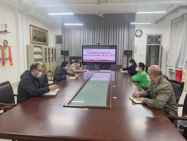 4月1日,医学影像学院党总支召开理论学习中心组(扩大)会议,学院党总支委员、各党支部书记及科室负责人参加。