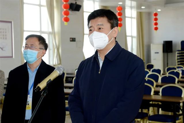 43日上午,由28名医务人员组成的潍坊医学院附属医院援沪抗疫医疗队出征仪式在9号楼七楼会议室举行。李明为医疗队员送行并讲话,学校副院长、组织部部长、临床医学院(附属医院)党委书记王承高出席仪式。