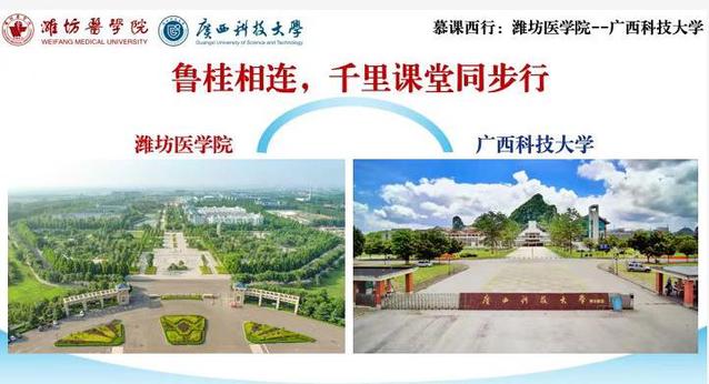 课程开始前,潍坊医学院-广西科技大学“慕课西行-同步课堂”项目启动仪式在线上举行。此次“慕课西行-同步课堂”项目的举行,将有助于推进两校的交流,发挥两校各自优势,拓宽教师视野,提高师生科学素养和技能水平,促进双方在人才培养、专业建设等方面的深度合作。