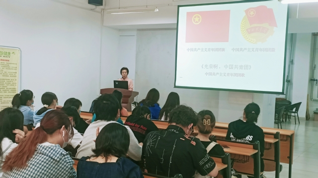 首先,魏瑞荣与大家回顾了一百年来中国共青团在中国共产党的领导下走过的辉煌历史和非凡历程,带领大家一起唱响团歌《光荣啊,中国共青团》;紧接着,她向大家讲解五四运动产生的历史背景、五四精神核心内容及其历史意义,引导新时代青年学生坚定理想信念,建功新时代;最后,她强调要有爱党爱国热情,薪火相传,接续奋斗,争做时代先锋。
