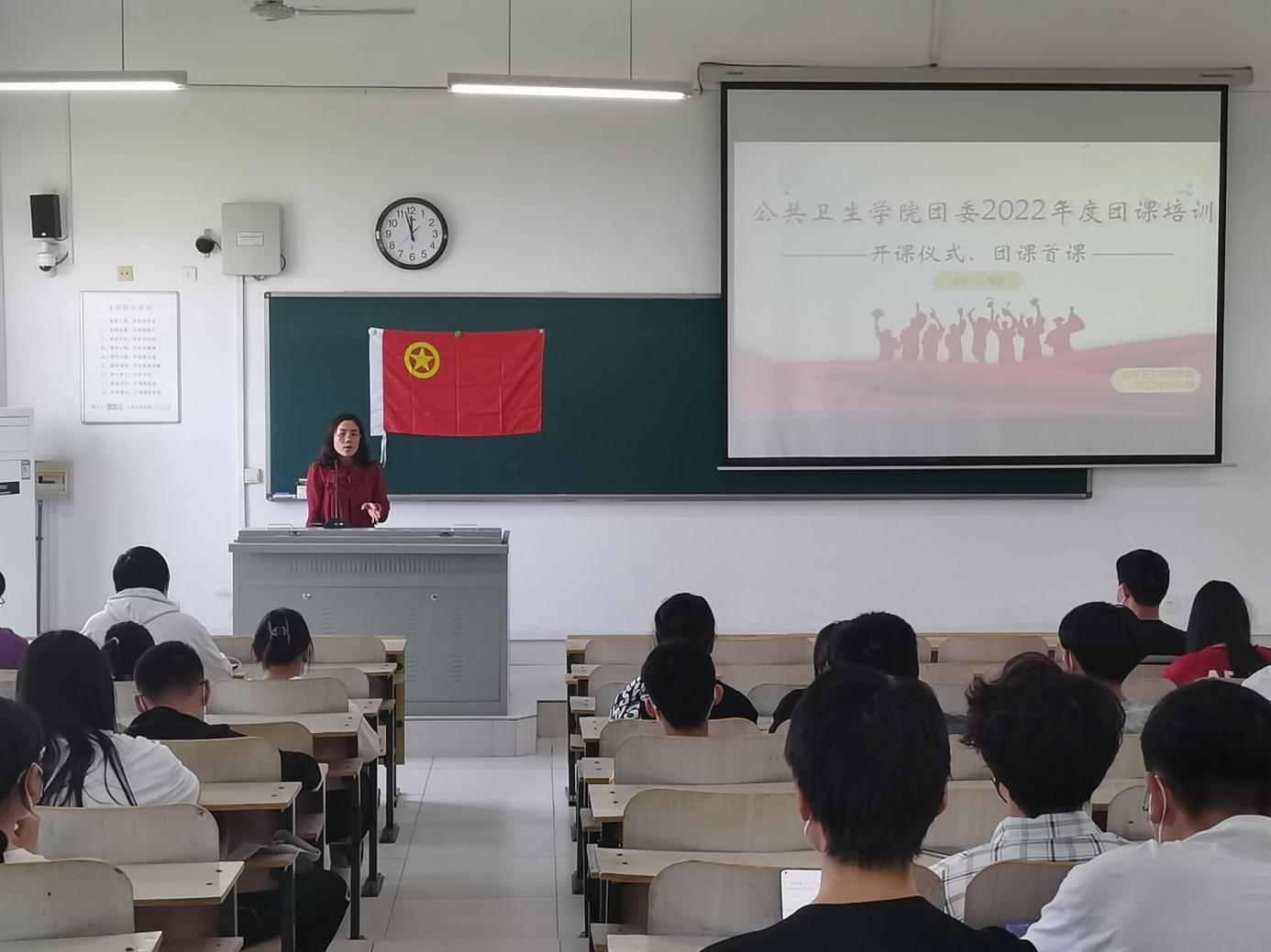 为切实做好团员发展工作,5月5日,公共卫生学院团委在教学楼D404举办2022年度团课开课仪式暨团课首课,2021级全体入团积极分子参加。