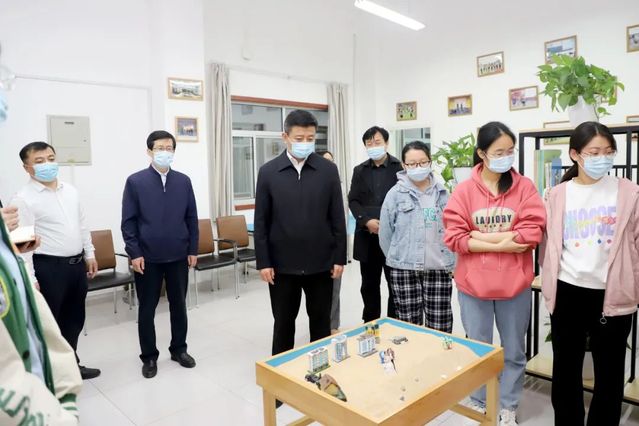 5月12日下午,2022年“心理健康月”活动启动,校党委书记李明、副院长张建华来到乐道书院观摩指导。