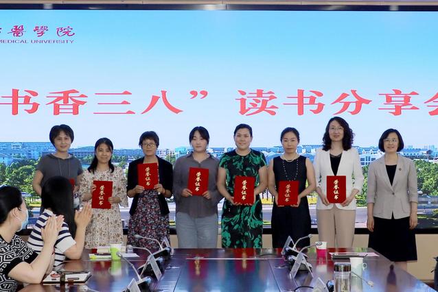 本次活动由学校宣传部、工会、妇委会联合举办,活动现场对获得2022年学校“书香三八”读书征文(家书)活动的马克思主义学院分会、基础医学院分会、药学院分会、麻醉学院分会和外国语学院分会颁发优秀组织奖。
